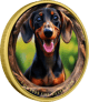 Das Hauptmotiv zeigt einen fröhlichen Kurzhaardackel in einem rustikalen Holzrahmen mit goldener Einfassung. Die naturgetreue Kolorierung in den klassischen Farben schwarz und rotbraun sowie die detaillierte Darstellung der charakteristischen Merkmale machen diese Münze zu einem wahren Kunstwerk. Die Rückseite präsentiert zwei verspielte Dackel auf einer sommerlichen Blumenwiese - ein Motiv, das durch seine Lebendigkeit besticht.
