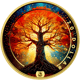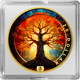Die Vorderseite zeigt eine majestätische Buddha-Skulptur in meditativer Pose. Durch die aufwendige Vollvergoldung und anschließende hochwertige Kolorierung entsteht ein faszinierendes Farbenspiel aus tiefem Blau, warmem Orange und goldenem Schimmer. Jedes Detail der traditionellen Ushnisha-Haarkrone wurde mit höchster Präzision herausgearbeitet. Die Rückseite präsentiert einen kraftvollen Lebensbaum – Symbol für Wachstum, Stärke und die Verbindung zwischen Himmel und Erde.