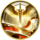 Die Rückseite zeigt ein kunstvoll gestaltetes Schwert mit ausgebreiteten Flügeln – ein Symbol göttlicher Gerechtigkeit und himmlischen Schutzes. Jede einzelne Feder wurde mit höchster Präzision geprägt und anschließend teilvergoldet. Das Ergebnis ist eine dreidimensionale Tiefenwirkung, die ihresgleichen sucht.