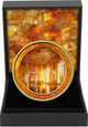 "Das Bernsteinzimmer gilt als das achte Weltwunder und ist seit 1945 verschollen. Diese Münze bewahrt seine Schönheit für die Ewigkeit."
