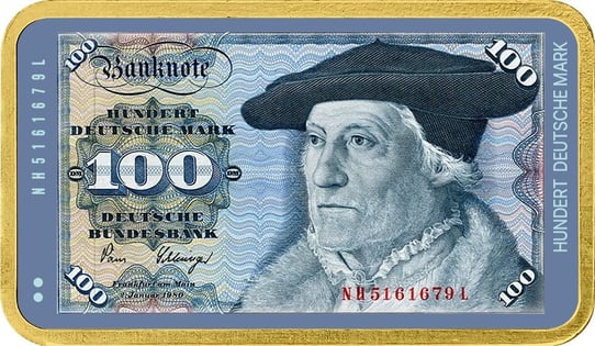 - Motiv: Detailgetreue Nachbildung des legendären 100-DM-Scheins mit vollständiger Vergoldung und hochwertiger Kolorierung