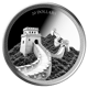 Die Rückseite zeigt die berühmte Chinesische Mauer – ein Symbol für Beständigkeit und Schutz, das sich perfekt in die Philosophie des Edelmetallbesitzes einfügt. Beide Seiten werden von einem klassischen Mäander-Ornament umrahmt, das der Münze eine zeitlose Eleganz verleiht.