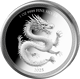 • checkmark greenMajestätischer Drache in höchster Prägequalität Polierte Platte auf einer Unze Feinsilber 999,9