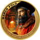 Die Münze besticht durch ihre aufwendige Gestaltung. Vollflächig vergoldet und anschließend hochwertig coloriert, zeigt die Vorderseite Marco Polo in all seiner Pracht - mit durchdringendem Blick, prächtigem Bart und kostbarer Gewandung. Im Hintergrund erkennt man die charakteristische chinesische Architektur, die seine legendären Reisen ins Reich der Mitte symbolisiert. Die Rückseite präsentiert meisterhaft die historische Reiseroute von Venedig über Kashgar bis nach Peking - eine Strecke, die die damalige bekannte Welt durchquerte.
