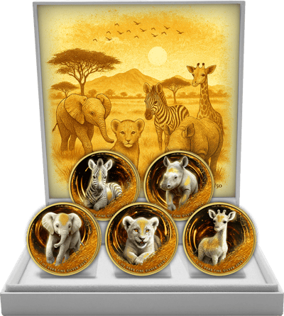 Afrikanische Tierbabys Silber Set 2025 (Auflage: 50 | teilvergoldet)