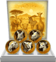 • Sechs teilvergoldete Silbermünzen mit bezaubernden afrikanischen Tierbabys in 999,9er Feinsilber