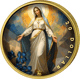 Kunstvolle Teilvergoldung und Colorierung machen diese Maria-Münze zu einem strahlenden Meisterwerk