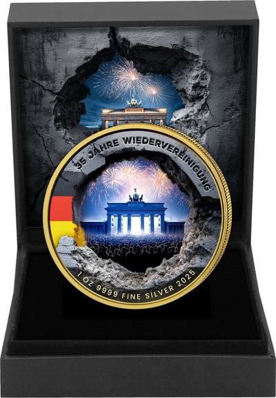 1 Unze Silber 35 Jahre Wiedervereinigung 2025 (Auflage: 100 | teilvergoldet)