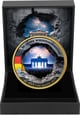 Die vollflächige Vergoldung verleiht dieser 1-Unze-Silbermünze eine majestätische Ausstrahlung. Besonders beeindruckend: Die hochwertige Colorierung zeigt das weltberühmte Brandenburger Tor, umrahmt von einem spektakulären Feuerwerk. Auf der Rückseite prangt stolz die deutsche Flagge – ein Symbol der Einheit und Freiheit.