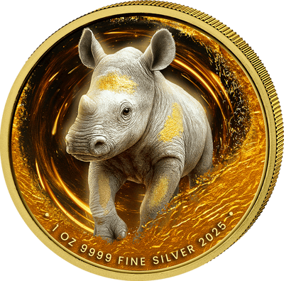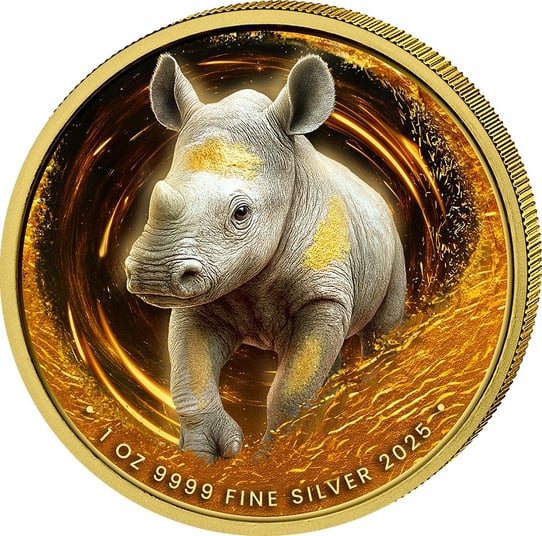 1 Unze Silber Afrikanische Tierbabys Nashorn 2025 (Auflage: 100 | teilvergoldet)