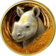 Die vollflächige Vergoldung verleiht diesem kleinen Dickhäuter einen majestätischen Glanz, während die hochwertige Colorierung jedes Detail zum Leben erweckt. Das tapsige Baby-Nashorn scheint förmlich aus der Münze herauszuspringen – ein Anblick, der Sammlerherzen höherschlagen lässt!