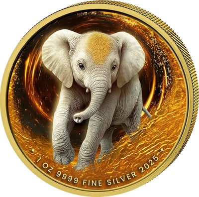 1 Unze Silber Afrikanische Tierbabys Elefant 2025 (Auflage: 100 | teilvergoldet)
