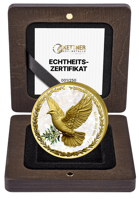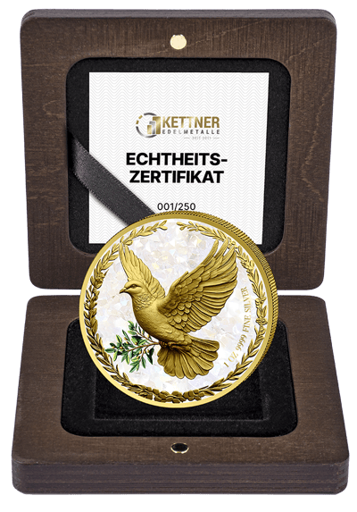 • Weltweit nur 250 Exemplare mit vergoldeter Friedenstaube und enormem Wertsteigerungspotential für Sammler