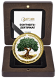 Auf der Rückseite entfaltet sich ein prächtiger Lebensbaum mit üppig grünen Blättern. Dieser kraftvolle Baum steht für Beständigkeit, Wachstum und die Verbindung zwischen Himmel und Erde. Die detailreiche Gestaltung in Polierter Platte macht jedes Blatt sichtbar und verleiht der Münze eine beeindruckende Tiefenwirkung.