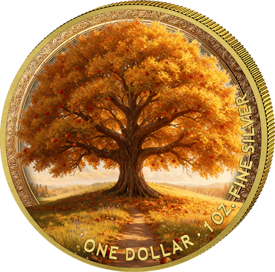 Edle Teilvergoldung auf 1 Unze Feinsilber macht diese Herbst-Edition zum begehrten Sammlerstück