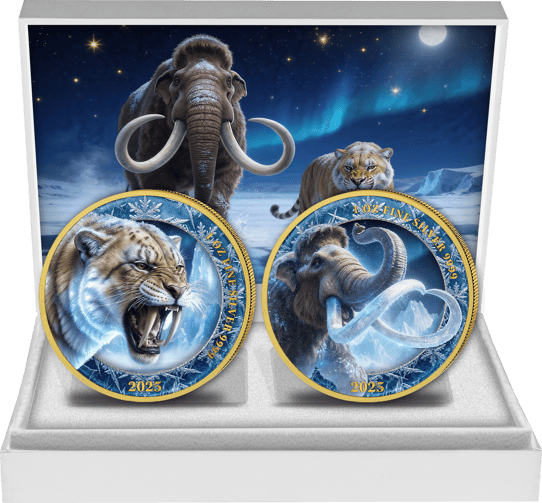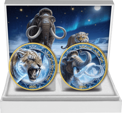 Mammut & Säbelzahntiger Silber Set 2025 (Auflage: 50 | teilvergoldet)