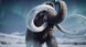 Das majestätische Wollhaarmammut hingegen strahlt eine ruhige Erhabenheit aus. Seine gewaltigen, geschwungenen Stoßzähne und das dichte, braune Fell sind mit beeindruckender Detailtreue dargestellt. Im Hintergrund erstrecken sich verschneite Bergketten unter einem mystischen Nordlicht – eine Szenerie von atemberaubender Schönheit.