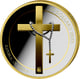 Auf der Wertseite dominiert ein majestätisches goldenes Kreuz das Zentrum. Ein silberner Rosenkranz schlingt sich kunstvoll um das Kreuz und endet in einem kleineren goldenen Kreuzanhänger. Diese Komposition symbolisiert die tiefe Verbundenheit von Gebet und Glauben. Der Nennwert von 20 Dollar sowie die Angabe „Republic of Liberia" und das Prägejahr 2025 vervollständigen das Design.
