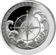 Die Rückseite überrascht mit einem kunstvollen Kompass-Motiv. Umgeben von dramatisch gestalteten Wellen, symbolisiert er Navigation und Orientierung – passend zur mythologischen Thematik. Die Inschrift „Republic of Liberia" sowie das Staatswappen vervollständigen das Design.