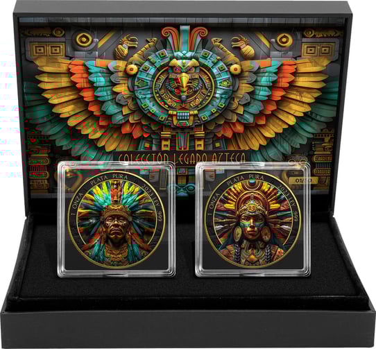 Die Motive des Azteken-Sets sind eine Hommage an das reiche kulturelle Erbe Mexikos. Jede Münze zeigt die prächtigen Symbole und Kunstwerke der Azteken, die mit größter Präzision und Liebe zum Detail auf die Münzen übertragen wurden. Die Farben sind nicht nur ein optischer Genuss, sondern erzählen auch die Geschichte eines Volkes, das einst die Welt der mesoamerikanischen Zivilisationen prägte.