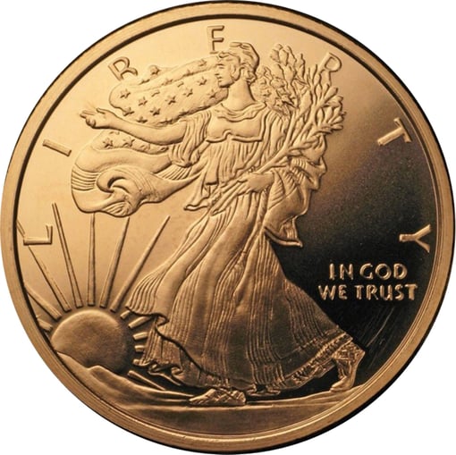 Die 2 oz Kupfermünze Walking Liberty stammt aus den U.S.A. und wird dort als sogenannte „Copper Round“ oder „Kufpermedaille“ gehandelt. Das Motiv ist in den USA sehr gefragt und wird nicht mit Nennwertgeber geprägt. Das Pendant zur Kupfermünze ist der die Rückseite des American Eagle (Silber/Gold) mit der Lady Liberty.