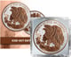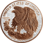 Auf der Motivseite dieser einzigartigen Münze ist ein kupferner Weißkopfseeadler abgebildet, dessen majestätische Präsenz durch den funkelnden Hintergrund hervorgehoben wird. Die Schrift auf dieser Seite ist ebenfalls in Kupfer ausgeführt, was einen schönen Kontrast zum glitzernden Hintergrund bildet.