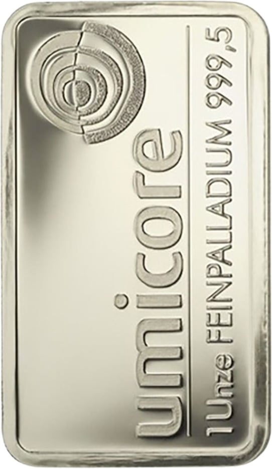 1 Unze Palladiumbarren Umicore, Heraeus, Degussa
