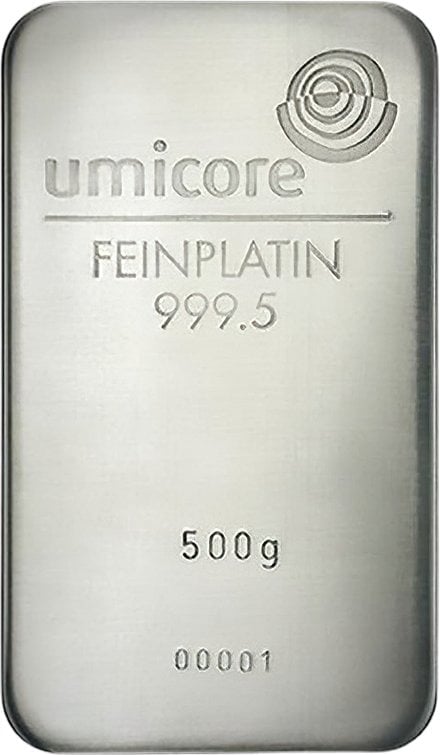 500g Platinbarren Umicore, Heraeus, Degussa