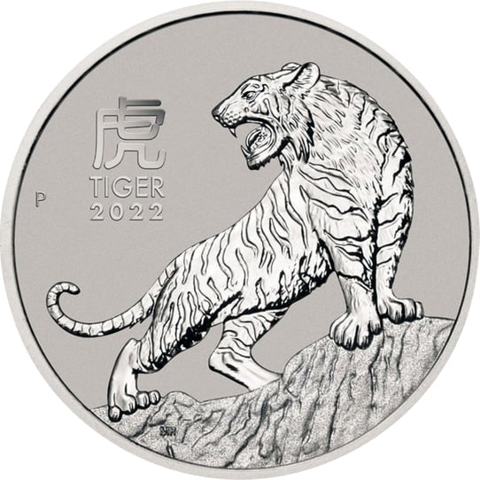 Der Tiger ist meistens unterwegs und nimmt bei seinen Ausflügen auch gerne mal ein Risiko in Kauf. So scheut er auch steile und hohe Berge nicht, was man anhand von dem Motiv auf der Vorderseite der Münze erkennen kann. Die silberne Darstellung des Tigers hat seine Krallen fest in den Berggipfel gegraben. Brüllend und gefährlich schaut das Tier zur Seite auf das sich neben ihm befindende chinesische Zeichen für Tiger.