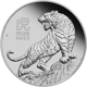 Die Perth Mint hat für 2022 das Jahr des Tigers im Zeichen der weltbekannten Lunar Serie III ausgerufen. Die Die Lunar Serie orientiert sich am chinesischen Tierkreiszeichenkalender und blickt auf eine 12-jährige Erfolgsgeschichte zurück. Das detaillierte Motiv zeigt ein Tigerjunges, das der Mutter durch den Dschungel folgt. Die Tarnstreifen der majestätischen Tiere erlauben einen tiefen Blick in die Szene. Darüber ist das chinesische Zeichen für Tiger und die lateinische Umschrift „TIGER 2022“ zu lesen. Die Rückseite stellt die Königin Elizabeth II. mit den üblichen Angaben zu Gewicht (1oz), Feinheit (999,5/1000) und Nennwert (1 DOLLAR) dar. Die strenge Limitierung auf 188 Stück ist ein Garant für eine deutliche Wertsteigerung, was sowohl Anleger als auch Sammler der Serie auf den Plan ruft.