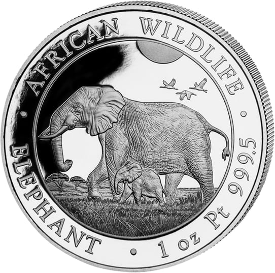 ✔ Design der 1 Unze Platin Somalia Elefant 2022