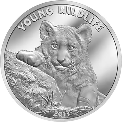 Detailreiche Prägung: Hochwertige Silbermünze mit detaillierter Darstellung eines jungen Tigers, Prägejahr 2013