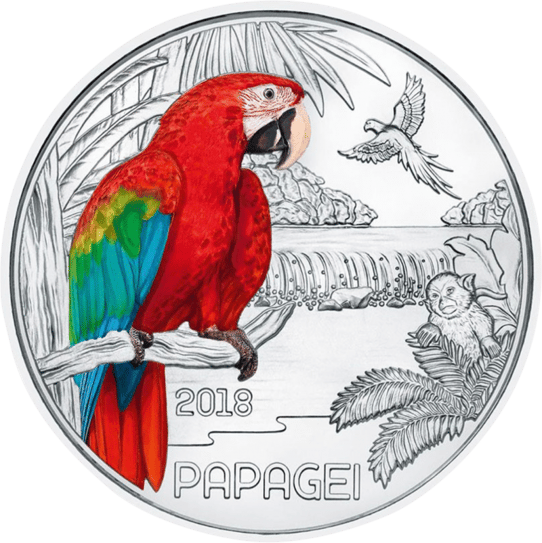 Der Papagei – Tier-Taler-Serie (6. Motiv) 3 Euro – Handgehoben