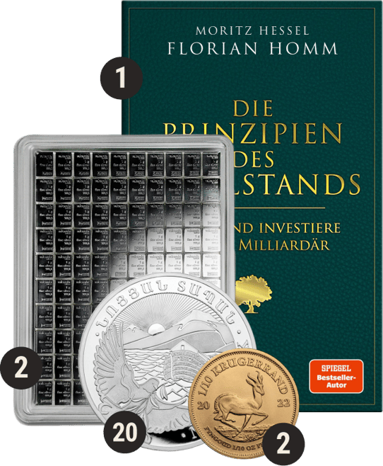 In Zusammenarbeit mit Moritz Hessel hat Florian Homm das Buch „Die Prinzipien des Wohlstands: Denke und investiere wie ein Milliardär“ geschrieben. Darin verraten die Beiden, wie Sie ihre Einstellung und Ihr Denken verändern können und natürlich auch, wie Sie richtig investieren.