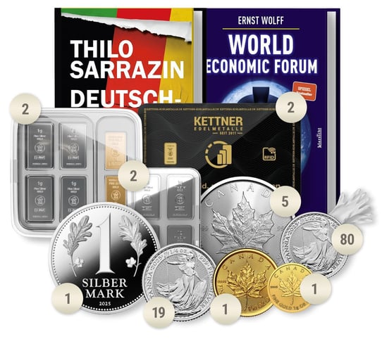 Das Paket setzt sich aus einer Vielzahl von Edelmetallen und Stückelungen zusammen, um Ihnen maximale Flexibilität und Sicherheit und Inflationsschutz zu bieten: