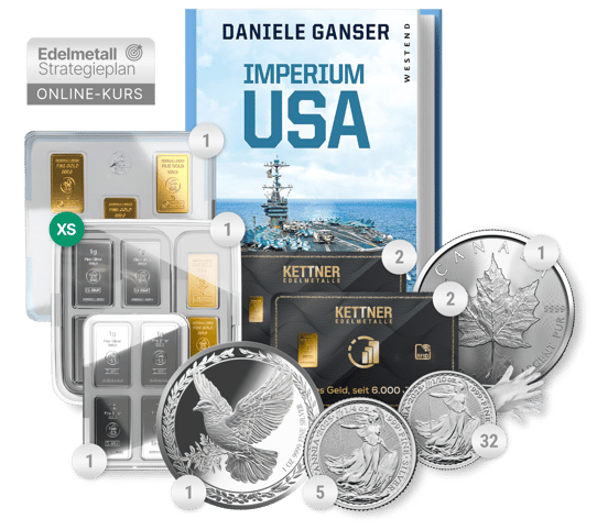 Mit unserem strategisch konzipierten Rettungs-Paket S bieten wir Ihnen maximale Sicherheit durch eine perfekt ausbalancierte Kombination aus Gold und Silber. Die sorgfältig gewählten Stückelungen vereinen optimalen Inflationsschutz mit der Flexibilität eines praktischen Tauschmittels - ideal für alle, die in unsicheren Zeiten auf echte Werte setzen.