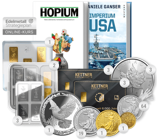 Mit dem umfassend konzipierten Rettungs-Paket M bieten wir Ihnen eine substanzielle Absicherung durch eine strategisch ausgewogene Kombination aus  Gold und Silber. Die sorgfältig ausgewählten Stückelungen verbinden nachhaltigen Inflationsschutz mit der Flexibilität eines unmittelbar verfügbaren Tauschmittels - die ideale Lösung für alle, die in unsicheren Zeiten auf bewährte Werte setzen.