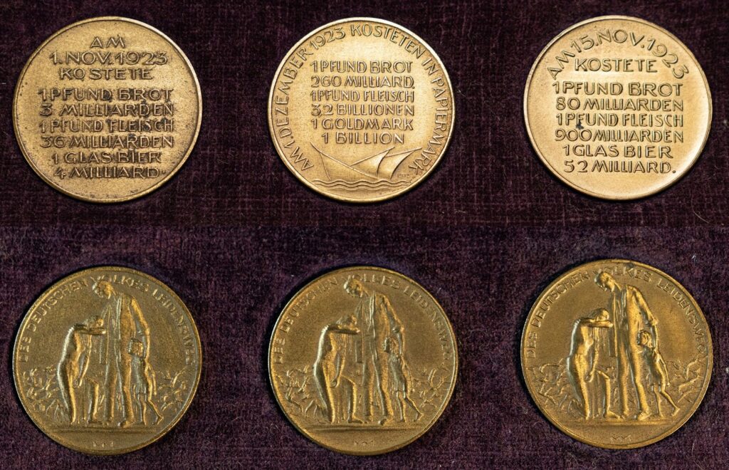 Wie schnell die Hyperinflation Ihr Vermögen tatsächlich vernichten kann, können Sie aus den Inschriften der Gedenkmünzen von 1923 entnehmen: