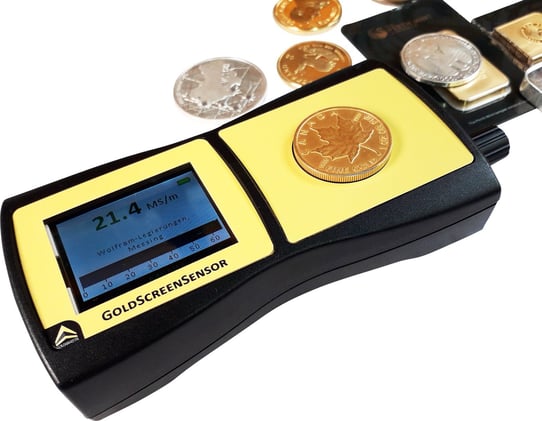 Mit dem in Deutschland hergestellten GoldScreen Sensor können Sie Münzen und Barren aus Gold auf Echtheit prüfen.