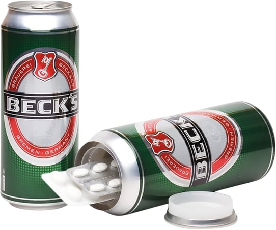 Perfekte Tarnung: Täuschend echter Dosensafe im Beck's Design für unauffällige Wertverwahrung
