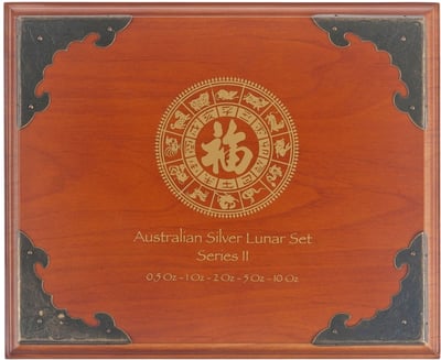 Von der renommierten Perth Mint in Australien präsentieren wir stolz die Lunar II Münzbox. Diese speziell entworfene Box bietet Platz für Silbermünzen verschiedener Größen, von ,5 Unze bis zu 10 Unzen. Wie alle unsere Produkte, ist auch diese Box brandneu und in einwandfreiem Zustand.