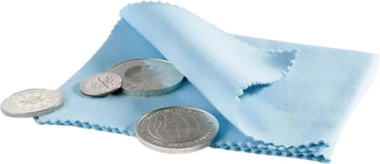 Das sehr fein gewebte Münztuch ist für Münzen, Barren, Medaillen, Uhren, Brillen und Schmuck geeignet. Die Farbe des Produktes ist wie abgebildet „blau“. Durch das flauschige Gewebe des Tuchs reinigt es mit Hilfe der besonderen Imprägnierung Ihr Münzen wieder blank und glänzend. Sogar stark verschmutzte und angelaufene Stellen sind durch die Anwendung des Münz-Poliertuchs kinderleicht verschwunden. Auch die Reinigung von Schmuck und Besteck stellen keinerlei Probleme dar. Beachten Sie jedoch, dass die Münzprägungen der Qualität „Polierte Platte“ sowie „Spiegelglanz“ aus Gründen des Werterhaltung stets unberührt bleiben sollten.